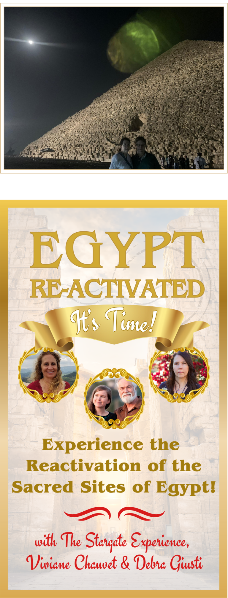Immerse yourself in the reactivation of Egypt’s sacred power with The Stargate, Viviane Chauvet, and Host Debra Giusti. This extraordinary webinar offers a unique opportunity to connect with spiritual and galactic guides, activate sacred sites, and join forces with interdimensional helpers.